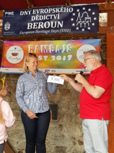 Na dobročinné akci kavárny Rambajs v Berouně v neděli 8. září jsem podpořil nadační fond Žirafka při Hořovické nemocnici. Dar jsem předal paní primářce Mileně Dokoupilové za asistence pana Bajaji, majitele kavárny Rambajs, na malém pódiu na náměstí Joachim Barranda.