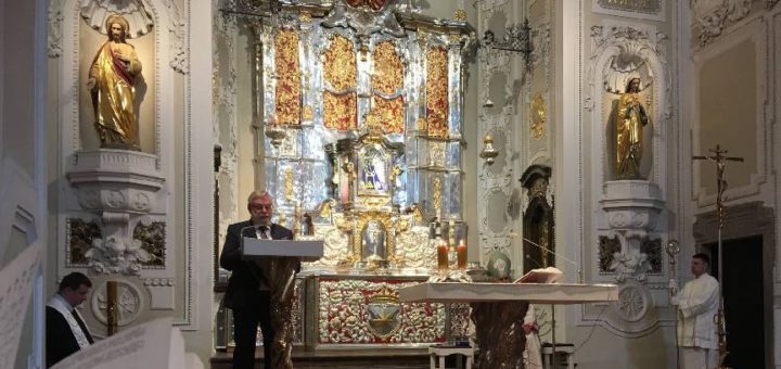 Projev místopředsedy Senátu J. Oberfalzera na Svaté Hoře u Příbrami na III. pouti díkuvzdání muklů, kteří přežili propad v NPT Bytíz u Příbrami v noci z 31. 3. na 1. 4. 1962.